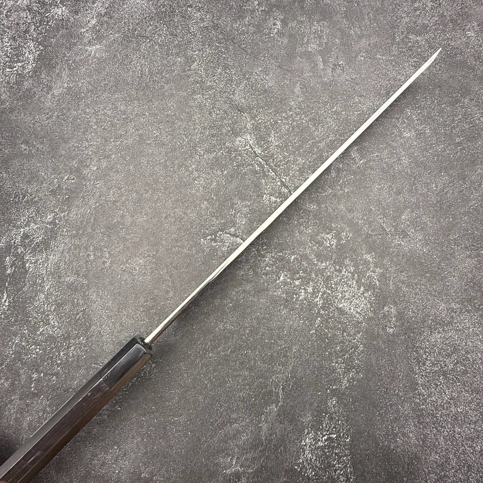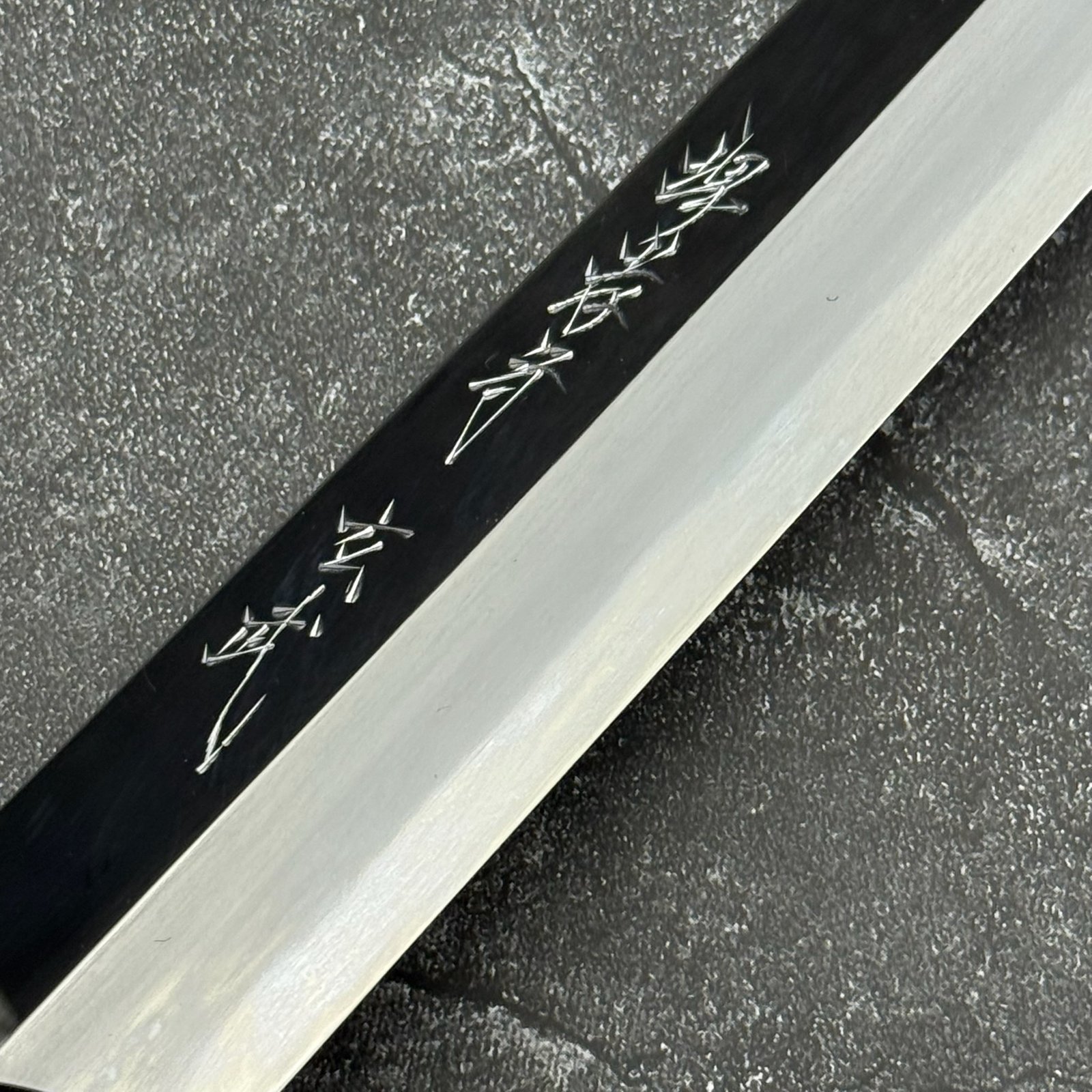 經過多次鍛造和打磨,堺的刀匠們製造出了這款以鋼的切割力著稱的青二鋼的頂級作品。通過加寬刀刃並進行鏡面處理,使其更具厚重感。